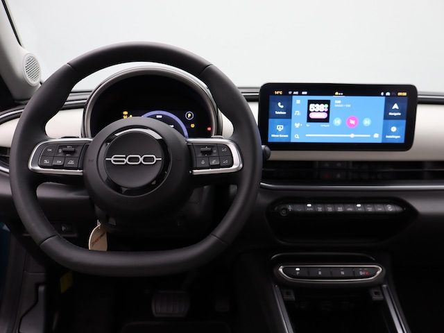 De vormgeving van deze Fiat 600 is stijlvol maar ingetogen en dat maakt meteen duidelijk dat u van deze auto pure kwaliteit mag verwachten. De aandrijving komt voor rekening van een benzinemotor en een automatische transmissie. Bestuurder en bijrijder krijgen een warm welkom: deze Fiat 600 is voorzien van verwarmbare voorstoelen. Een handige voorziening op deze auto is de elektrische achterklep die u op afstand kunt openen. Tot de uitrusting behoren ook 18 inch lichtmetalen velgen, LED-dagrijverlichting, extra getint glas, in delen neerklapbare achterbank en LED-achterlichten. Verken de digitale wereld van mobiliteit waar het digitale dashboard alles biedt wat u nodig heeft om uw reis comfortabel te maken. Altijd achter zicht, nooit meer nekkramp! De achteruitrijcamera maakt het supermakkelijk. Als u de adaptive cruise control inschakelt, regelt de auto zelf de snelheid en de afstand tot de auto voor u. Dankzij Connected Services heeft u overal en altijd uw dashboard op zak. Alle belangrijke functies zijn te checken via de app. Een belangrijke veiligheidsvoorziening is de bediening van het audio-installatiesysteem en het navigatiesysteem via knoppen op het stuur. Dab-ontvangst geeft daarbij een kraakheldere ontvangst. De uitrusting van deze Fiat is met automatische airconditioning, sportstuur met schakelpaddels, draadloos opladen, regensensor, keyless entry en automatisch dimmende binnenspiegel behoorlijk compleet. Deze auto is voorzien van innovatieve systemen die u onderweg begeleiden en beschermen. In het instrumentarium ziet u tijdens de rit ook de belangrijkste verkeersborden aangegeven, die de auto automatisch voor u leest. Met de vermoeidheidsassistent bent u ook op lange ritten veilig op pad. Het systeem geeft een waarschuwing zodra het tijd is voor een pauze. Dankzij veiligheidsvoorzieningen als dodehoekdetectie en autonoom remsysteem, bent u steeds veilig onderweg. Bent u nieuwsgierig naar deze auto? Laat het ons dan snel weten.