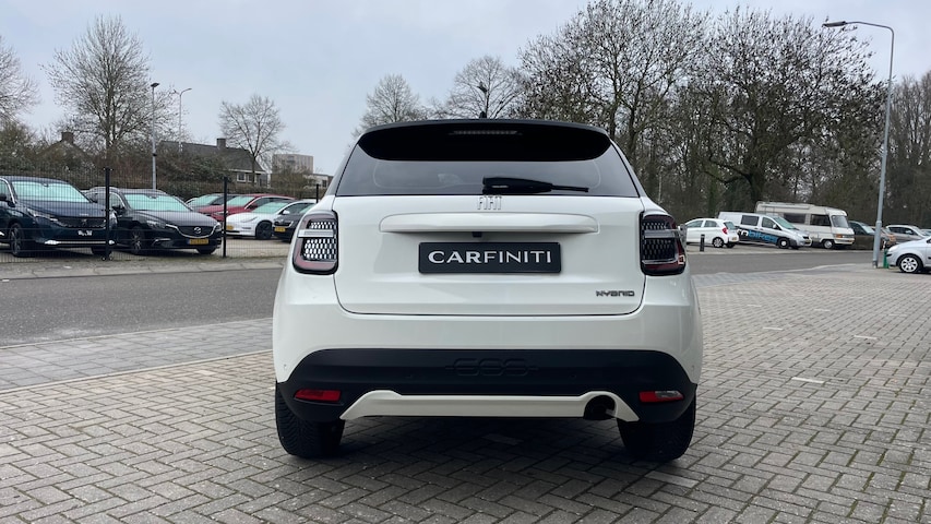 Deze Fiat 600 komt uit 2024 en kostte toen € 34.190,-. Deze geïmporteerde personenauto staat sinds 2026 op kenteken, is voorzien van een benzine én een elektriciteit-motor en een cilinderinhoud van 1199 cc.