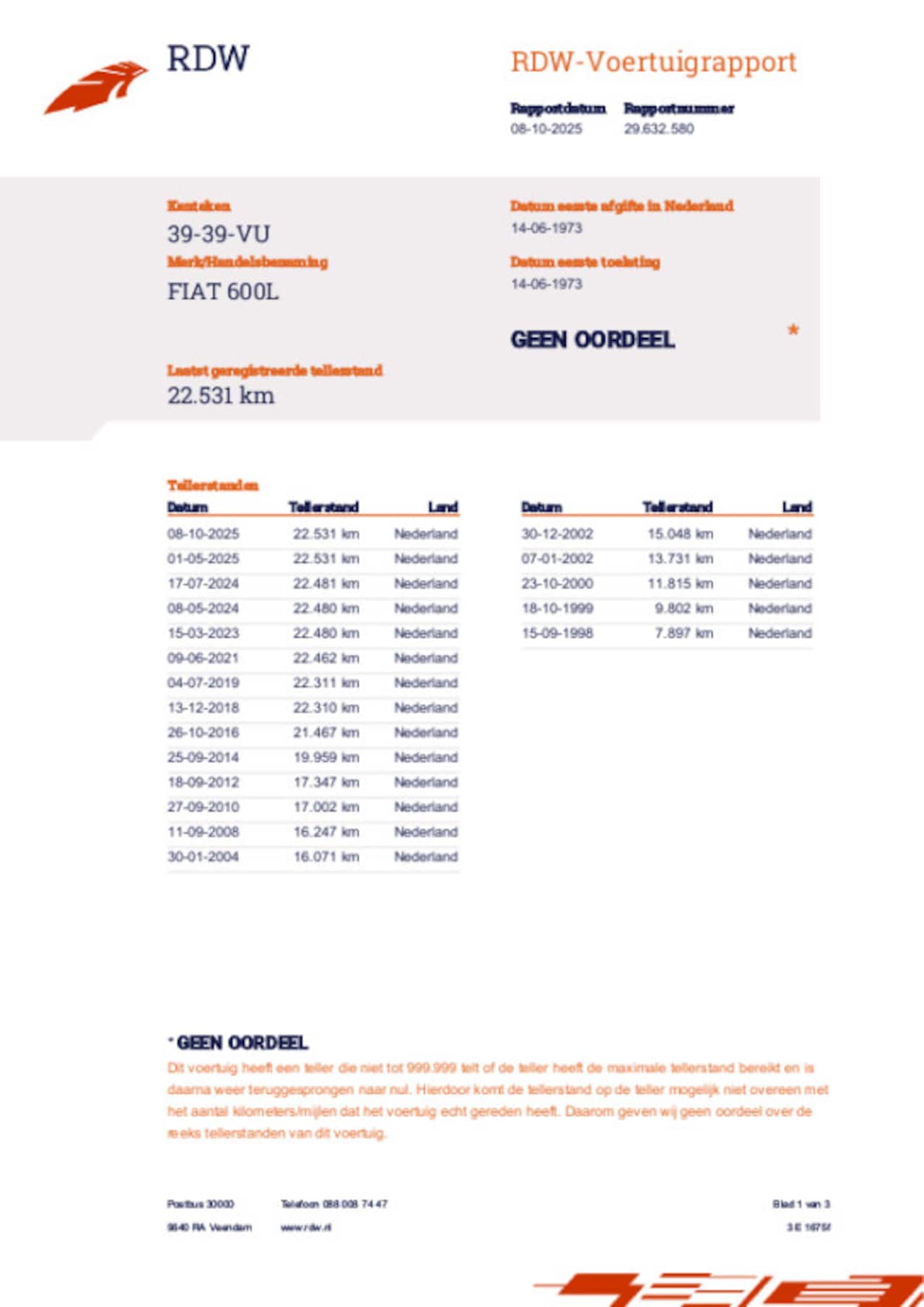 L oldtimer uit 1973