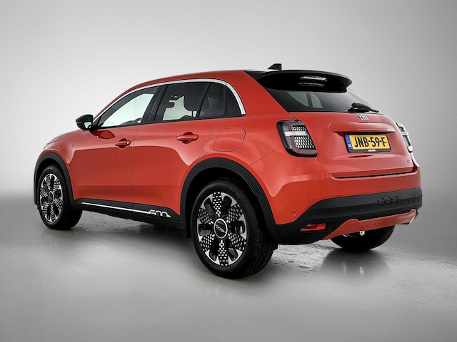 Elektrisch rijden is ontspannen rijden. Achter het stuur van deze Fiat 600e kunt u zich in alle rust concentreren op de weg. Met de combinatie van elektrische aandrijving en automatische transmissie manoeuvreert u soepel door het verkeer. Een weldaad voor uw rug en die van uw bijrijder: deze Fiat 600e heeft verwarmbare voorstoelen met massagefunctie. De achterklep opent automatisch met een druk op de knop. Handig als u met volle handen staat. Natuurlijk behoren 18 inch lichtmetalen velgen, LED koplampen, extra getint glas, in delen neerklapbare achterbank en LED-achterlichten ook tot de uitrusting van deze complete auto.