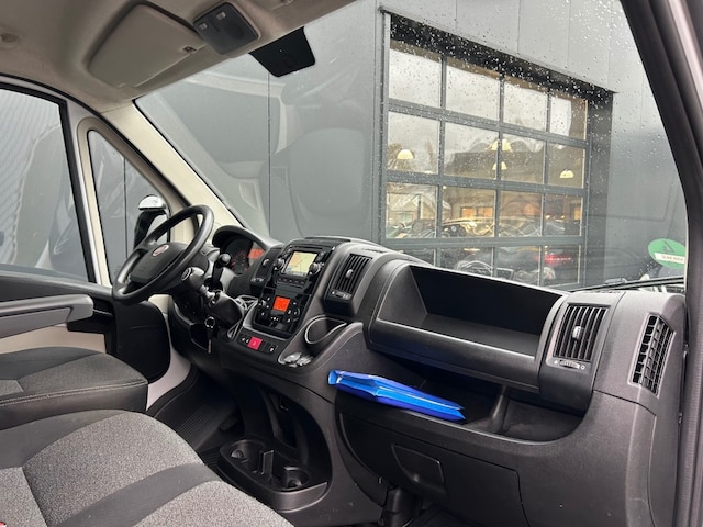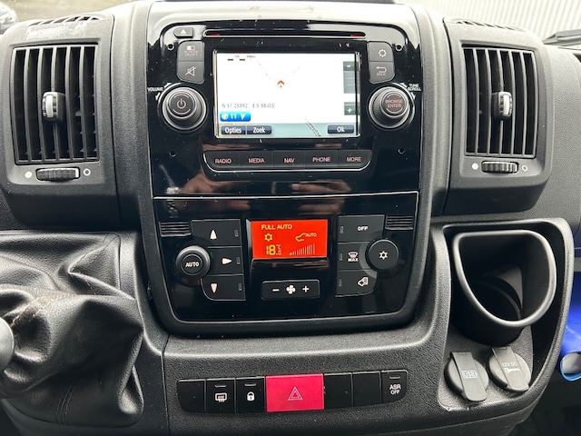 Keurige Fiat Ducato 2.0 MultiJet 3-zits voorzien van navigatie full map, achteruitrijcamera, cruise control, parkeersensoren, MAxxFan dakventilator met afstandsbediening, automatische airco en trekhaak 2.000kg.