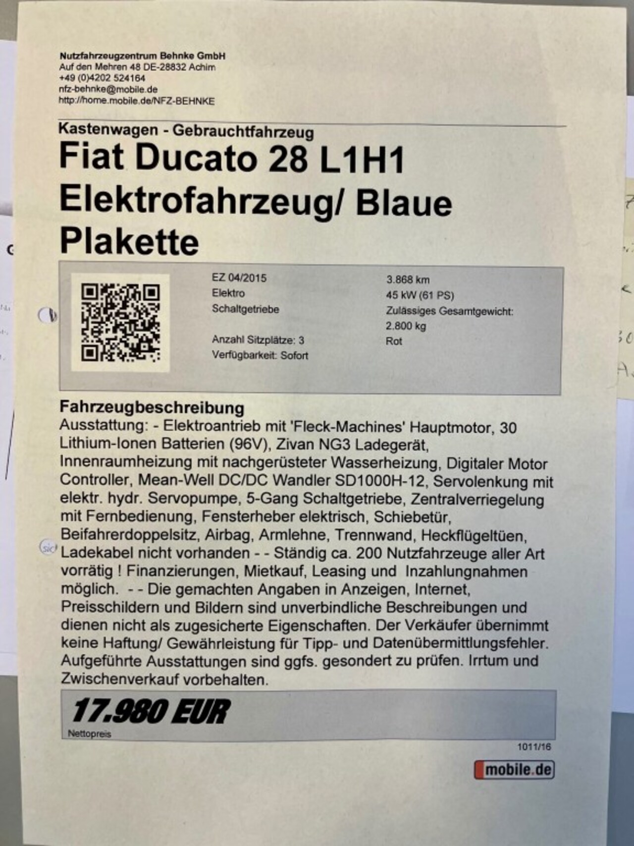 28 Full Electrisch L1H1 Actual ACCUPAKKET MOET NAGEKEKEN