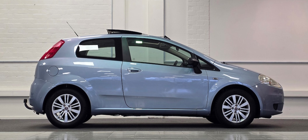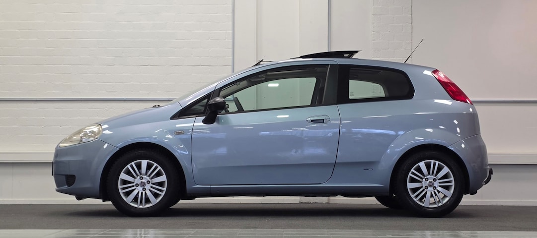 U rijdt gemakkelijk, comfortabel en zonder zorgen met deze Fiat Grande Punto. De aandrijving van deze Fiat wordt verzorgd door een viercilinder motor en een handgeschakelde vijfversnellingsbak. Het glazen panoramadak biedt u een breed zicht op de omgeving. Tot de uitrusting van deze Fiat behoren ook 15 inch lichtmetalen velgen en snelheidsafhankelijke stuurbekrachtiging.