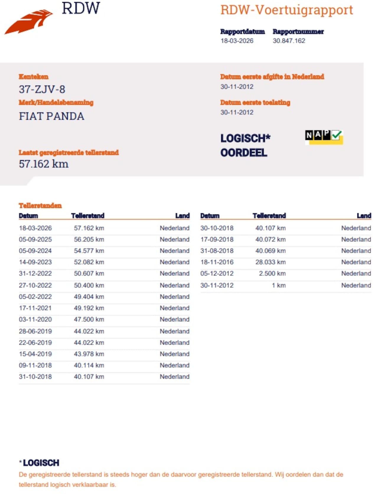 | Kilometerstand | 57.162 km |
