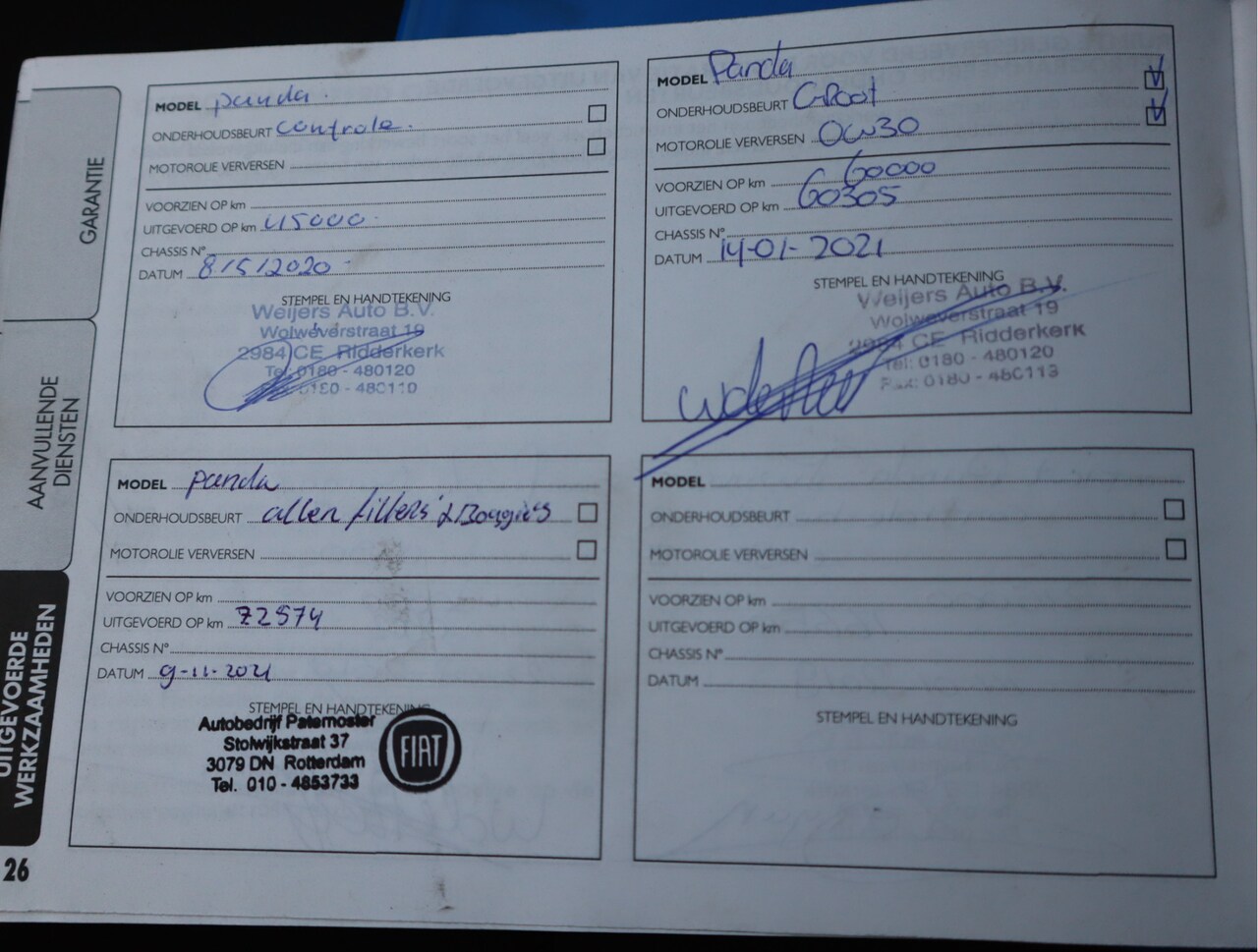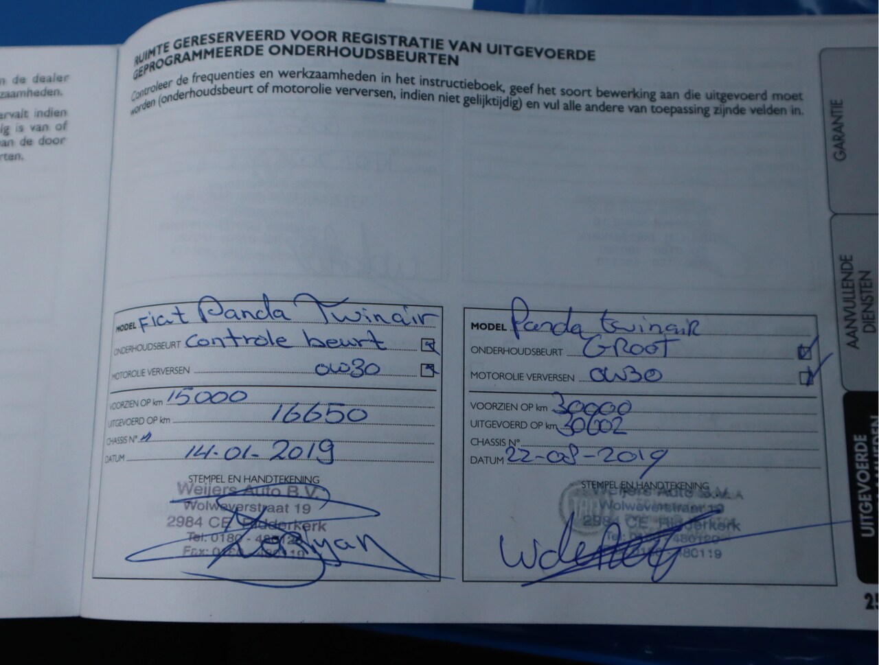 | APK | Bij aflevering |