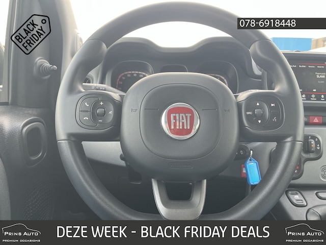 Omdat u nu eenmaal niet overal ogen heeft, is deze Fiat Panda voorzien van een achteropkomend verkeer waarschuwing die registreert wanneer de afstand tot uw achterligger te krap is. Volume aanpassen, andere radiozender? U bedient het audiosysteem veilig en handig met de functies op het stuur. Met de DAB-ontvanger heeft u keuze uit talloze digitale radiozenders met de allerhoogste geluidskwaliteit. Met één druk op de knop blaast de airconditioning een koele bries door het interieur. En dan is deze auto ook nog eens voorzien van centrale deurvergrendeling met afstandsbediening en verstelbaar stuur.