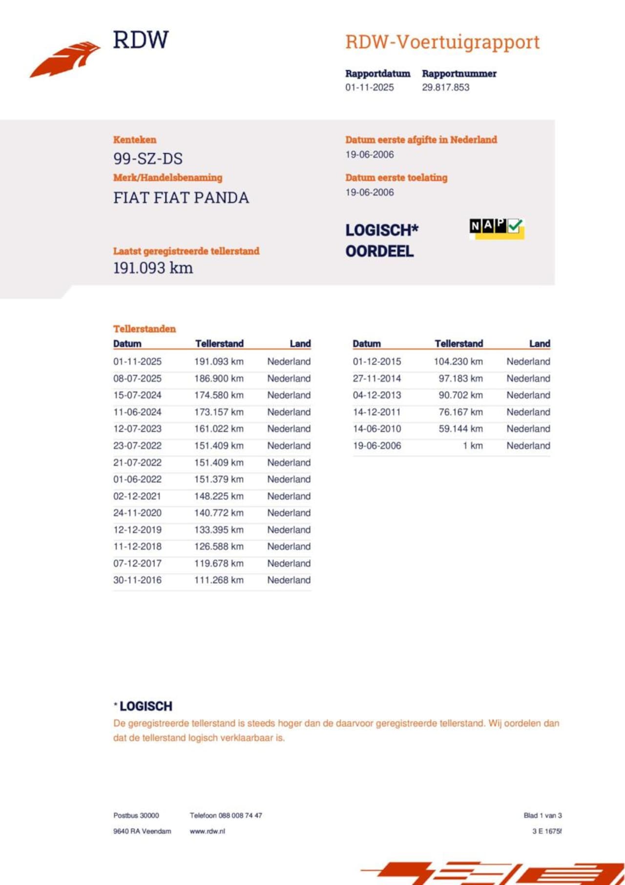 | Kilometerstand | 191.093 km |