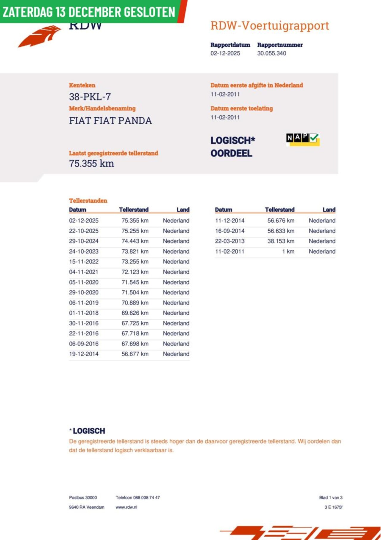 | Kilometerstand | 75.355 km |