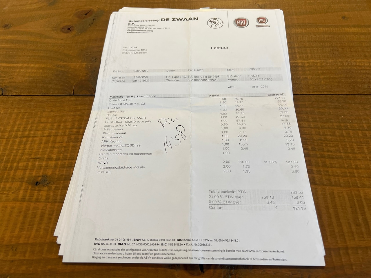 1.2 Edizione Cool Airco, Distributiesnaar vervangen