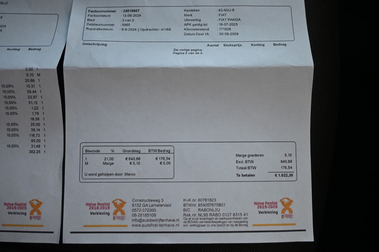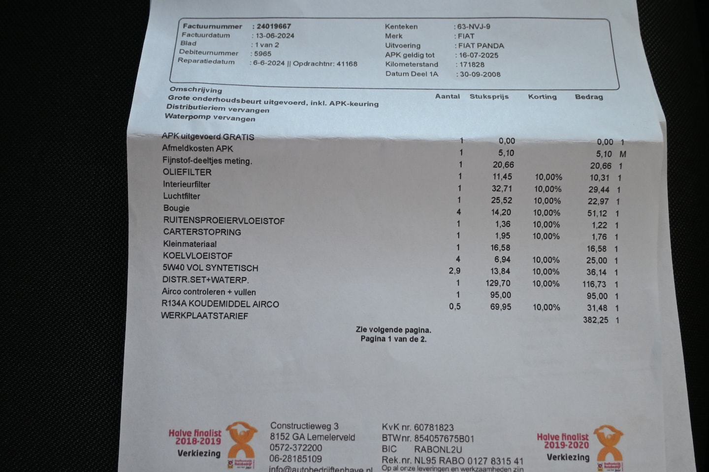 | APK | Bij aflevering |