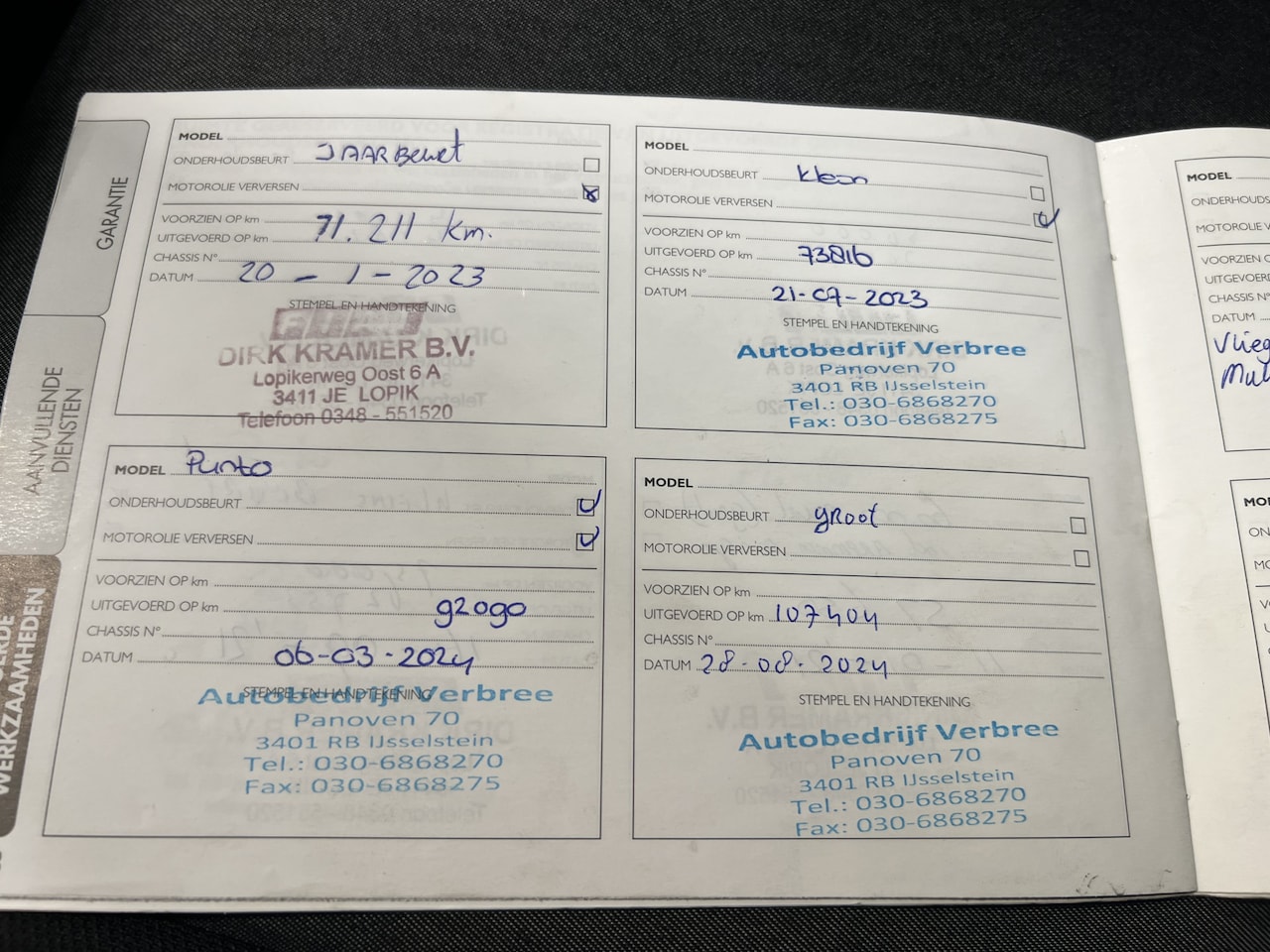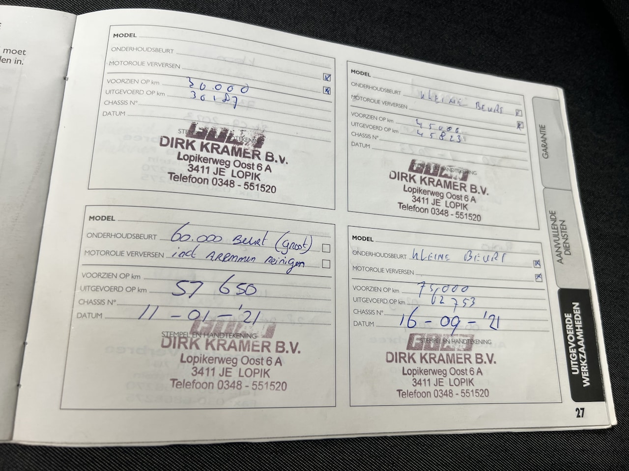 | APK | Bij aflevering |