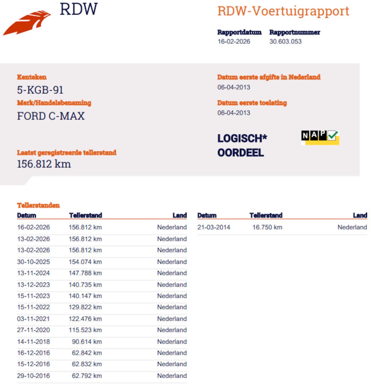 | Kilometerstand | 157.816 km |