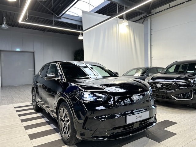 De naam Capri kunt u misschien wel kennen uit het verleden. Het was de sportieve 4 zits coupé die Ford in de jaren 70 en 80 verkocht. Nu is de naam terug voor Fords ruime elektrische crossover. De Capri past niet precies in een hokje. De zit is hoog, maar door het design is de auto wel sportief. Onder de fraaie aflopende daklijn vinden we een bagageruimte van bijna 600 liter! Meer dan de Ford Mondeo. Door de efficiënte aandrijflijn, grote accu en aerodynamische carrosserie is de actieradius volgens de WLTP testmethode maar liefst 627 km! Dat betekent dat deze auto, ook in de dagelijkse praktijk, heel bruikbaar is. Ook op vakantie naar Zuid-Frankrijk of op wintersport in Oostenrijk is geen enkel probleem.