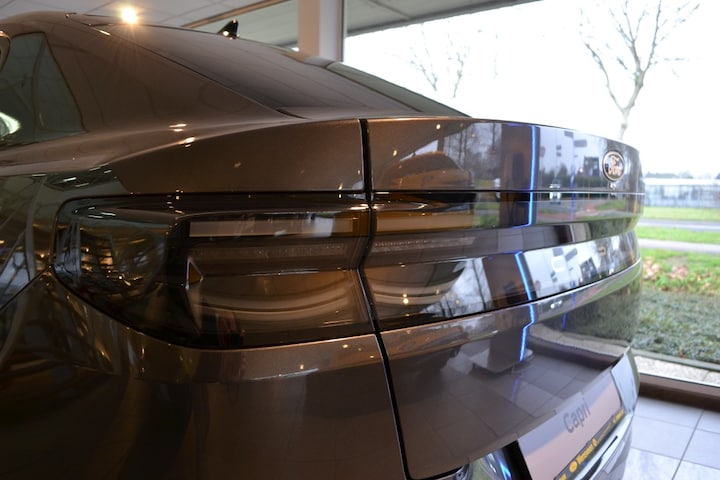 - LED signatuur achterlichten verbonden door zwart accent met Capri logo