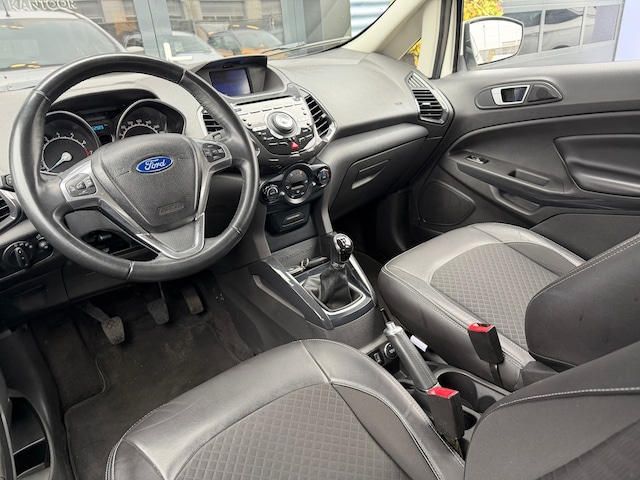 Met een auto als deze Ford EcoSport komt u absoluut goed voor de dag. De aandrijving van deze Ford wordt verzorgd door een driecilinder motor en een handgeschakelde versnellingsbak. Het lederen interieur maakt het echt af. Ook 17 inch lichtmetalen velgen, halflederen bekleding, in delen neerklapbare achterbank en verstelbare lendensteunen zijn aan boord.