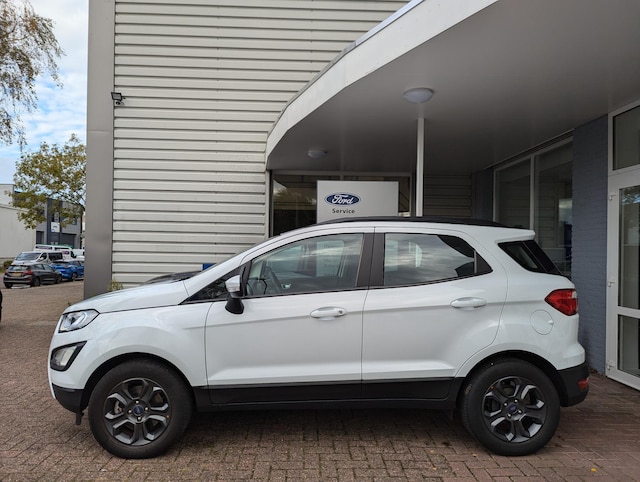 Keurige, Dealeronderhouden 125pk EcoSport Ultimate met pas 38.000km in de kleur Frozen White met Touchscreen Navigatie, Bluetooth & Voice control, Radio & USB, Apple CAR Play & Android Auto, Parkeersensoren, Cruise Control, Airconditioning, Elektrisch inklapbare spiegels, 16" Lichtmetalen velgen, Elektrische Ramen voor + achter, Hill Assist, Mistlampen & LED Dagrijverlichting en Dakreling.