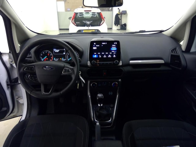 Keurige en Dealeronderhouden 125pk EcoSport Ultimate met pas 19.000km en voorzien van Touchscreen Navigatie, Achteruitrijcamera, Bluetooth & Voice control, Radio & USB, Apple CAR Play & Android Auto, Parkeersensoren, Cruise Control, Airconditioning, Elektrisch inklapbare spiegels, 16" Lichtmetalen velgen, Elektrische Ramen voor + achter, Hill Assist, Mistlampen & LED Dagrijverlichting en Dakreling.