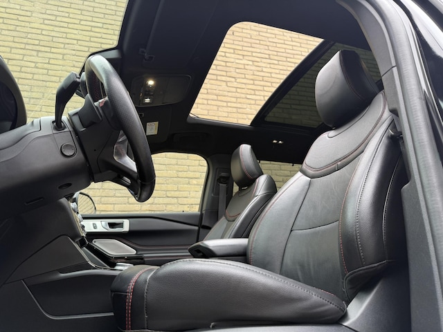 De ST-Line uitvoering geeft deze Explorer een sportieve uitstraling, met onder andere fraaie 20 inch "Machined Black" lichtmetalen velgen en een stoer design. Binnenin wordt u omringd door luxe en comfort dankzij de hoogwaardige lederen ST-Line bekleding, elektrisch verstelbare stoelen met memoryfunctie en zowel stoelverwarming als stoelkoeling. Het panoramadak zorgt voor een lichte en ruimtelijke beleving in het interieur, terwijl de sfeerverlichting een aangename ambiance creëert tijdens elke rit.