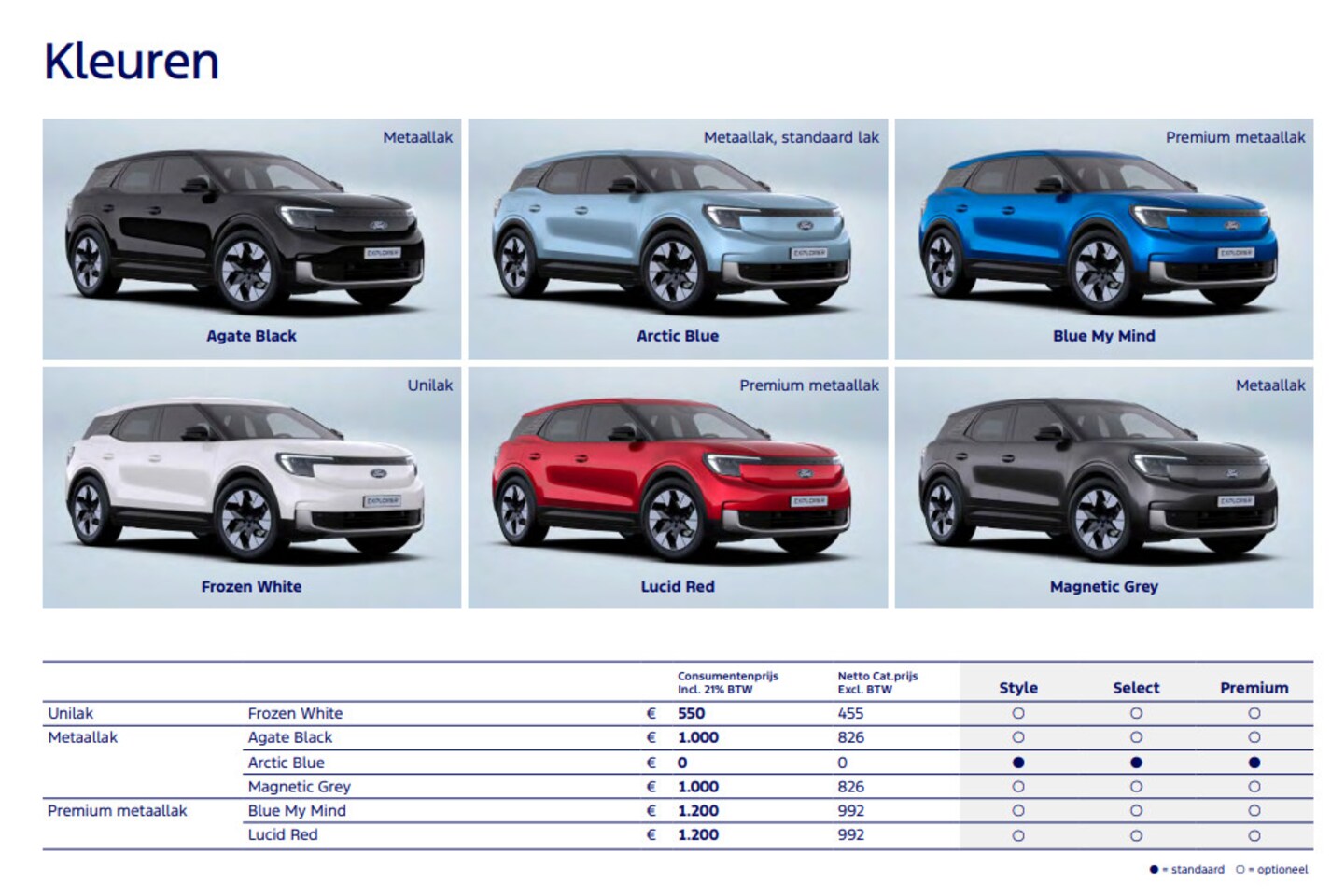 | Oorspronkelijke kleur | Arctic blue is gratis, andere kleuren te |