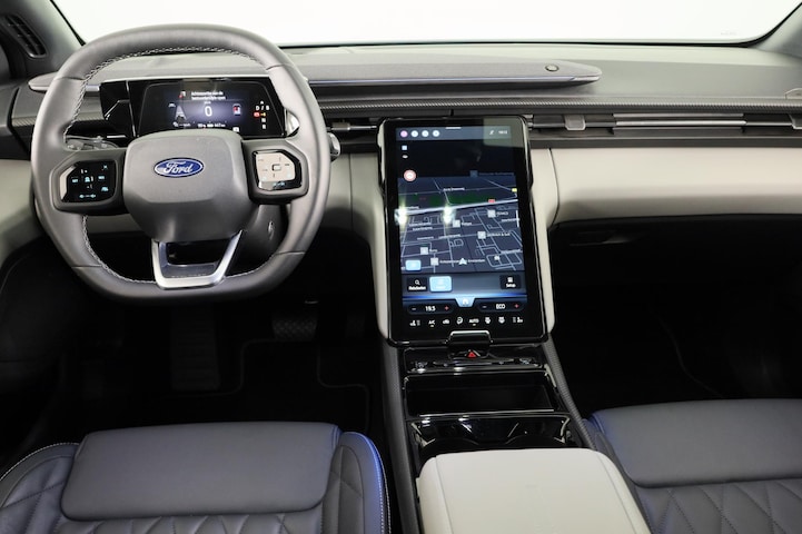 Ford, een merk dat staat voor kwaliteit en een drang naar innovatie. 'Go Further' zeggen ze daar. Een elektrische auto is echt niet meer alleen voor korte ritjes. Het rijbereik van deze auto biedt voldoende ruimte voor jouw dagelijkse ritten. Daardoor kan het opladen vaak 's nachts gebeuren. Dit is een nieuwe auto, hij is nu direct leverbaar. Doe maar luxe! Neem plaats in de verwarmbare voorstoelen en voel hoe de massagefunctie zorgt voor verfrissende doorbloeding op de lange ritten. Ziet er goed uit, die sportstoelen. Maar waar het om gaat, is de solide zit onder alle omstandigheden. De elektrisch bedienbare achterklep opent met een druk op de knop. Geniet van het uitzicht naar buiten door het riante glazen panoramadak. Als je de stuurverwarming inschakelt, geniet jij van weldadige warmte voor jouw handen en vingers. Vergeet halogeen; deze koplampen gebruiken de allernieuwste matrix LED-technologie met maximale lichtopbrengst zonder de tegenligger te hinderen. Tot de voorzieningen van deze auto behoren 21 inch lichtmetalen velgen, extra getint glas, in delen neerklapbare achterbank en LED-achterlichten.
