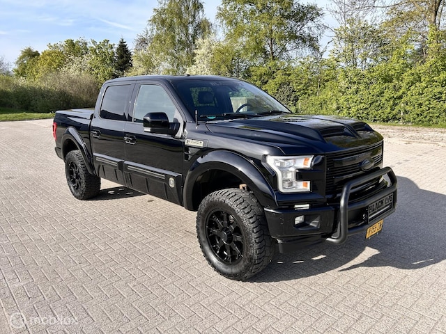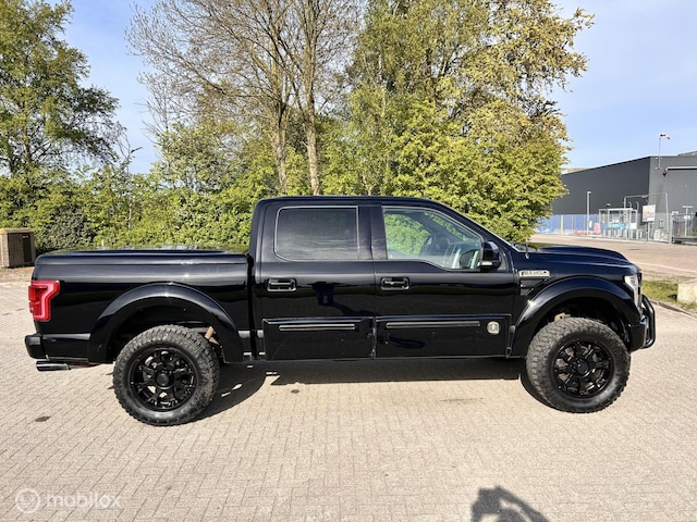 Aangeboden: zeer complete en exclusieve Ford F-150 SuperCrew BLACK OPS by Tuscany uitvoering. Deze volledig zwart uitgevoerde F-150 onderscheidt zich door zijn krachtige V8, luxe uitrusting en robuuste uitstraling.