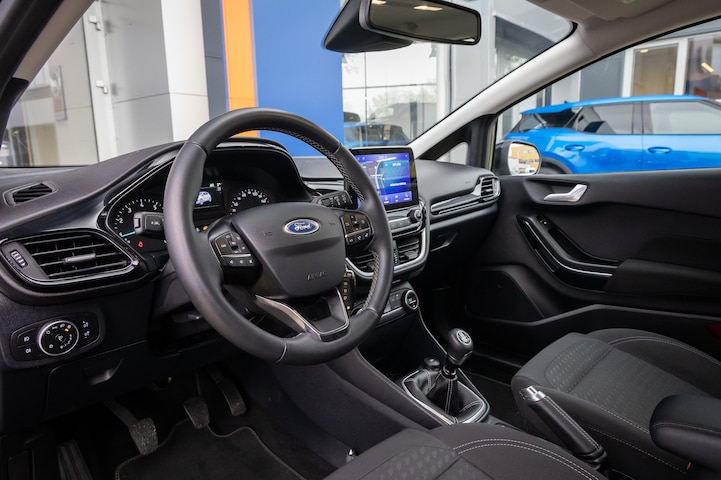 Met een auto als deze Ford Fiesta komt u absoluut goed voor de dag. Deze auto komt uit 2020. De krachtige benzinemotor van deze auto is gekoppeld aan een handgeschakelde zesversnellingsbak. Natuurlijk zijn de sportstoelen super functioneel als het rechterpedaal ingetrapt wordt. Maar ook voor het uiterlijk doen ze veel! De uitmonstering van deze auto wordt gecompleteerd door onder meer 16 inch lichtmetalen velgen, LED-dagrijverlichting, in delen neerklapbare achterbank en LED-achterlichten. Hoe is het met de banden, de accu en andere onderdelen? Connected Services maakt het inzichtelijk, 24/7 via de app. U kunt het audiosysteem met DAB-ontvangst en het full map navigatiesysteem bedienen met de knoppen op het stuur of zelf met uw stem. Onbedoeld snijden na het inhalen gebeurt niet meer, dankzij de achteropkomend verkeer waarschuwing. Nooit meer te warm of te koud. De automatische airconditioning zorgt altijd voor de temperatuur die u kiest. Geen parkeervak is te klein dankzij de assistentie van de parkeersensoren. Met regensensor, cruise control, automatisch dimmende binnenspiegel, lederen stuur, centrale deurvergrendeling met afstandsbediening en boordcomputer is deze auto helemaal compleet. Pragmatisch en veilig als deze auto is, beschikt hij over diverse veiligheidssystemen. Mooi binnen de lijnen van de rijstrook blijven? Het Lane-keeping systeem helpt altijd een handje. In een noodsituatie telt elke meter. Het brake assist systeem van deze auto zorgt ervoor dat uw remweg korter wordt. Bovenop deze veiligheidsfeatures heeft deze Ford bovendien hill hold functie en bandenspanningcontrolesysteem. We laten u deze auto graag helemaal zien. Belt u ons voor een afspraak?