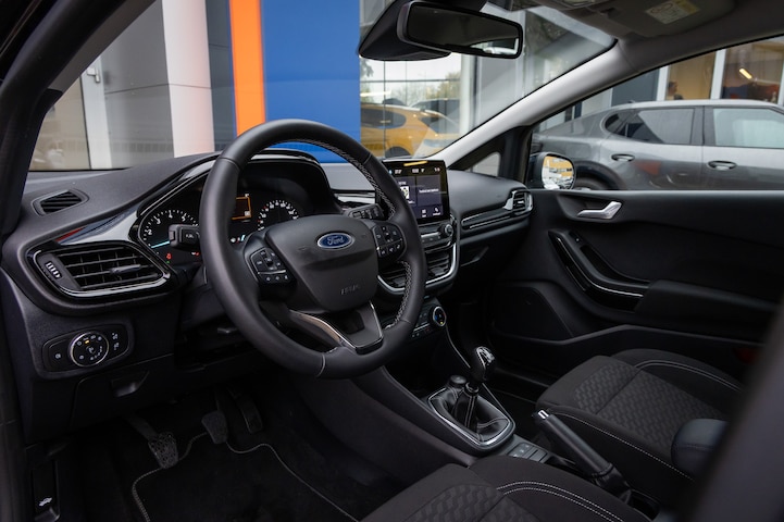 Deze Ford Fiesta is van de jongste generatie. Prestaties, brandstofverbruik - alles helemaal van nu. Mét al wat kilometers op de teller. Een nieuw model, maar onder de nieuwprijs! Met zijn benzinemotor en handgeschakelde zesversnellingsbak is dit een prima auto voor nog vele kilometers. Voorin is het 's winters genieten met de verwarmbare voorstoelen voor zowel bestuurder als bijrijder. Natuurlijk zijn de sportstoelen super functioneel als het rechterpedaal ingetrapt wordt. Maar ook voor het uiterlijk doen ze veel! Beknibbelen op comfort is er niet bij met deze Ford Fiesta. Hij is zelfs voorzien van een verwarmd stuurwiel! De uitmonstering van deze auto wordt gecompleteerd door onder meer LED koplampen, in delen neerklapbare achterbank en snelheidsafhankelijke stuurbekrachtiging. De speciale app verbindt met Connected Services, die de status van vitale functies bijhoudt en waarschuwt als u bijvoorbeeld moet tanken, de bandenspanning moet controleren of olie moet bijvullen. Laat u onderweg niet afleiden, de bediening van het audiosysteem gaat met knoppen op het stuur en met spraak. Natuurlijk is de audio-installatie voorzien van DAB-ontvangst. Aan boord van deze Ford Fiesta is een achteropkomend verkeer waarschuwing voor extra veiligheid. De auto is ook uitgevoerd met automatische airconditioning. De meeste schade bij inparkeren komt van een randje of paaltje dat u even niet zag. Maar de parkeersensoren zien alles en waarschuwen op tijd. Ook is de Ford uitgerust met: regensensor, cruise control, keyless entry, automatisch dimmende binnenspiegel, centrale deurvergrendeling met afstandsbediening en boordcomputer. De automatische veiligheidssystemen in deze Ford fungeren als een extra paar ogen. En dat niet alleen, ze kunnen ook actief ingrijpen, om zo u en uw passagiers te beschermen. Dat de auto steeds meer taken van de bestuurder overneemt, merkt u bijvoorbeeld aan het systeem voor verkeersbord-detectie in deze Ford. Het Lane-keeping systeem doet precies wat nodig is: waarschuwen en corrigeren bij onbedoelde overschrijding van de rijstrooklijnen. Het systeem voor vermoeidheidsherkenning neemt het waar als uw concentratie verslapt en geeft u dan een waarschuwing. Verder is deze auto uitgerust met hill hold functie, brake assist en bandenspanningcontrolesysteem. Bel nu onze verkoopadviseur voor een proefrit!