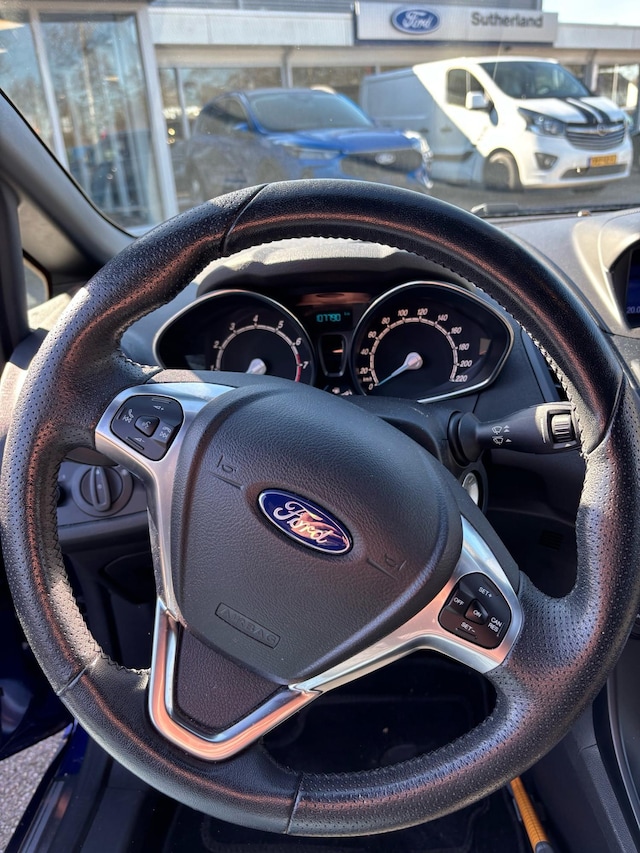 Deze Ford Fiesta gaat met gemak nog vele, vele, vele tienduizenden kilometers mee. Energiek rijgedrag, fraaie uitstraling en een plezier om in te rijden, deze Ford Fiesta. Hij heeft een benzinemotor en een handgeschakelde vijfversnellingsbak. De sportstoelen zorgen ervoor dat u goed en comfortabel zit, ook als het gas erop gaat. Tot de uitrusting behoren ook 17 inch lichtmetalen velgen, sportonderstel, LED-dagrijverlichting, in delen neerklapbare achterbank, LED-achterlichten en verstelbare lendensteunen.