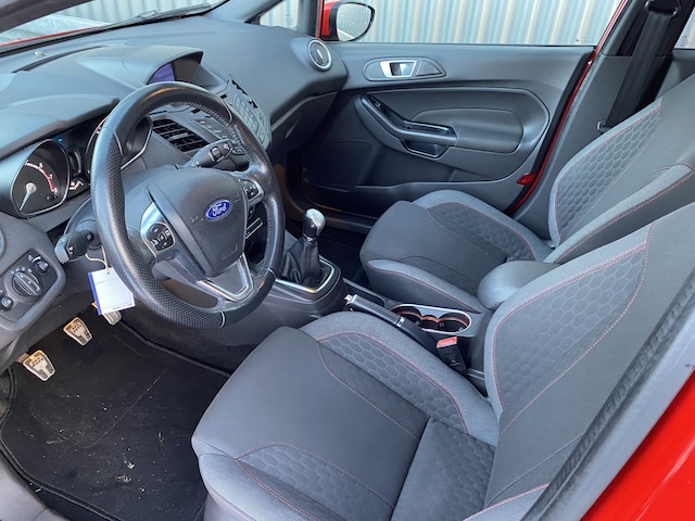 WIJ ZIJN ALLEEN OPEN OP TELEFONISCHE AFSPRAAK. Bijzonder nette en rijk uitgeruste Ford Fiesta 1.0 EcoBoost ST Line, slechts 118Dkm. NAP op de klok en met o.a. Automatische Klimaatregeling, Navigatiesysteem, Bluetooth (Carkit), Cruise Control, Voorruitverwarming, Park Distance Control en Origineel Licht Metaal. Deze unieke auto wordt geleverd met nieuwe APK en inruil is uiteraard bespreekbaar.