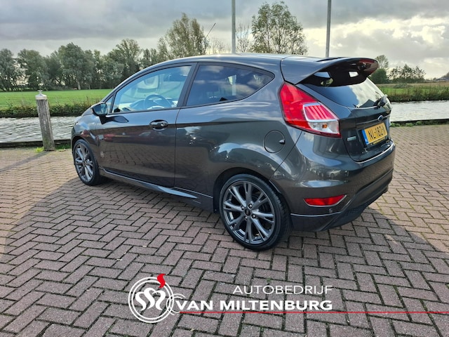 Zeer nette en volledig onderhouden Ford Fiesta 1.0 EcoBoost ST Line. Deze Fiesta is o.a voorzien van: climate control, cruise control, sportstoelen, 17 inch velgen nieuw gepoedercoat met nieuwe banden, originele radio cd met navigatie USB en Aux, achterklepspoiler, parkeersensoren achter, in hoogte en diepte verstelbaar multifunctioneel lederen stuurwiel, bestuurdersstoel in hoogte verstelbaar, Isofix op de achterbank welke in delen neerklapbaar is, elektrische ramen, inklapbare spiegels, mistlampen, etc. Wij rekenen 750,- kosten rijklaar maken. Dit pakket bestaat uit een onderhoudsbeurt, nieuwe APK, 12 maanden garantie met een maximum van 15.000km, halve tank brandstof, poetsen (interieur en exterieur) en 12 maanden mobiliteitsgarantie. Voor vragen kunt u terecht bij Albert van der Wind op telefoonnummer 06-36090624. Uiteraard staat de auto er bij aflevering spic en span bij.