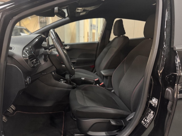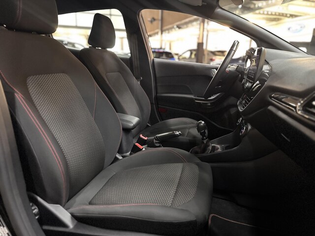 Sportieve en complete Fiesta 95pk ST-Line met Full Body Styling pakket incl. Sportonderstel, 17" Lichtmetalen velgen en pas 28.000km. Voorzien van Touchscreen icm. Apple Car Play & Android Auto, Climat control, Bluetooth & Voice Control, DAB+ Radio & USB, Lane Keeping Aid, Hill Assist, Parkeersensoren, Cruise control, Elektrisch inklapbare Buitenspiegels, Automatisch Licht- & Regensensor, Automatisch Dimmende Binnenspiegel, Elektrische Ramen voor & achter, LED Dagrijverlichting, Adaptieve Mistlampen en Armsteun.