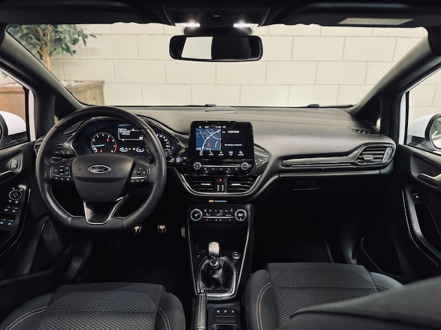 Origineel Nederlands geleverde en keurig onderhouden Ford Fiesta ST-Line met slechts 74.316 km. Voorzien van o.a. elektrisch glazen panoramadak, LED dagrijverlichting met projectorkoplampen, stoel-, stuur- en voorruitverwarming, climate control, cruise control, navigatie, parkeersensoren, etc.
