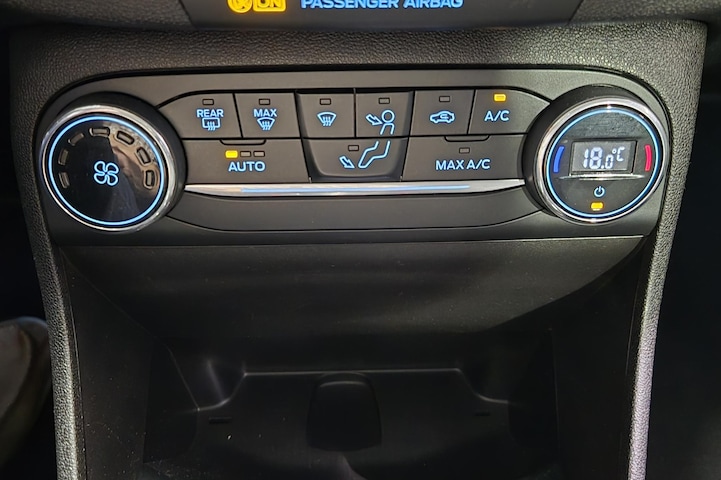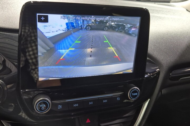 Niets achter deze auto blijft verborgen door de achteruitrijcamera. Een veilig gevoel! Had je de auto nou wel afgesloten? Met Connected Services check je het overal en altijd. Een optie die de veiligheid verhoogt, is de bediening vanaf het stuur van het audiosysteem (met DAB-radio!) en het navigatiesysteem. Als je wilt kun jij beiden zelfs met je stem bedienen. Natuurlijk is er ook automatische airconditioning aanwezig. Achter het stuur van deze Ford ben jij niet alleen. De auto kijkt als het ware met je mee tijdens de rit. De regensensor schakelt de ruitenwissers in als het nodig is en de automatisch inschakelbare verlichting doet de lichten voor je aan. Deze Ford is voorzien van cruise control, automatisch dimmende binnenspiegel, lederen stuur, centrale deurvergrendeling met afstandsbediening, boordcomputer en lederen versnellingspook.