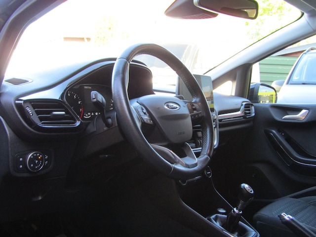 De Ford Fiesta is een uitdagende auto. De messcherpe vormgeving is een lust voor het oog, terwijl de rijeigenschappen zelfs de meest kritische bestuurder tevredenstellen. U ontdekt het zelf wanneer u kennis maakt met deze Fiesta. De aandrijving van deze Ford wordt verzorgd door een driecilinder motor en een handgeschakelde versnellingsbak. Tijdens gure dagen is het prettig zitten in de verwarmbare voorstoelen. De sportstoelen houden u en uw bijrijder goed op z'n plek tijdens het accelereren en bij het nemen van scherpe bochten. Comfortabel houvast krijgt u van het verwarmd stuurwiel. Natuurlijk behoren 16 inch lichtmetalen velgen, LED-dagrijverlichting, in delen neerklapbare achterbank, LED-achterlichten, verstelbare lendensteunen en verwarmde ruitensproeiers ook tot de uitrusting van deze complete auto.
