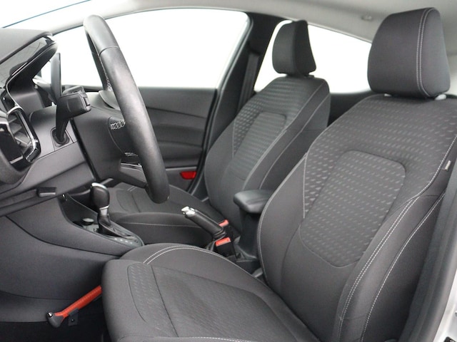Volop rijplezier, veel ruimte en een handige achterklep. Deze Ford Fiesta heeft het allemaal. In deze auto vindt u een benzinemotor en een automatische transmissie. Tijdens gure dagen is het prettig zitten in de verwarmbare voorstoelen. De sportstoelen houden u en uw passagier stevig vast tijdens een snelle rit, maar bieden ook altijd comfortabele ondersteuning. Natuurlijk kunt u zonder. Maar waarom? Lekker toch, zo'n verwarmd stuurwiel? Tot de uitrusting van deze Ford behoren ook LED koplampen, in delen neerklapbare achterbank en LED-achterlichten.