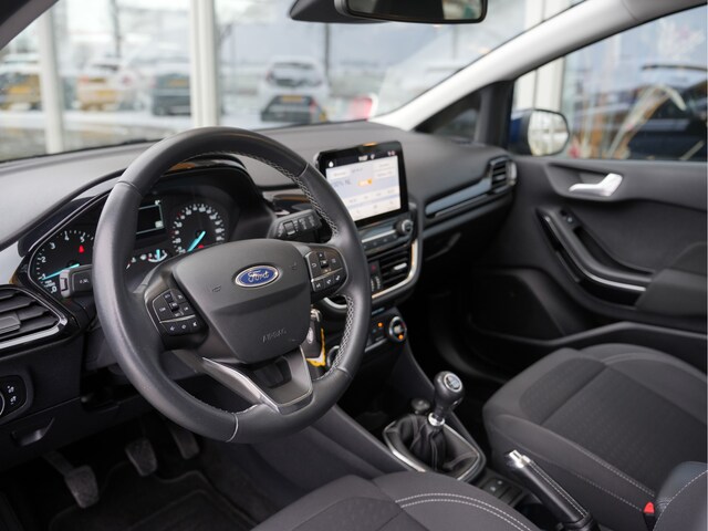 Een smartphone met internetverbinding legt eenvoudig overal contact met de auto. U kunt functies activeren en de conditie van de auto monitoren. Onderweg geniet u van de kwaliteit van het audiosysteem met DAB-ontvangst. De bediening is gemakkelijk via knoppen op het stuur of via spraak. Aan boord van deze Ford Fiesta is een achteropkomend verkeer waarschuwing voor extra veiligheid. U verwacht natuurlijk dual zone automatische airconditioning in deze auto, en die is er dan ook. Superstrak parkeren wordt een eitje dankzij de parkeersensoren. En dan is deze auto ook nog eens voorzien van WIFI-hotspot, regensensor, cruise control, automatisch dimmende binnenspiegel, lederen stuur en centrale deurvergrendeling met afstandsbediening.