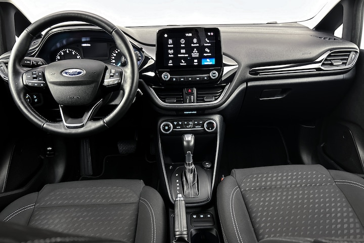 Herkenbaar design gaat bij Ford samen met maximaal rijplezier. Als u van autorijden houdt, dan zit u met deze Fiesta beslist goed. Met zijn benzinemotor en automatische transmissie is dit een prima auto voor nog vele kilometers. Scherpe bochten, pittige acceleraties? In de sportstoelen blijft u altijd in positie. Tot de uitrusting behoren ook LED koplampen en in delen neerklapbare achterbank.