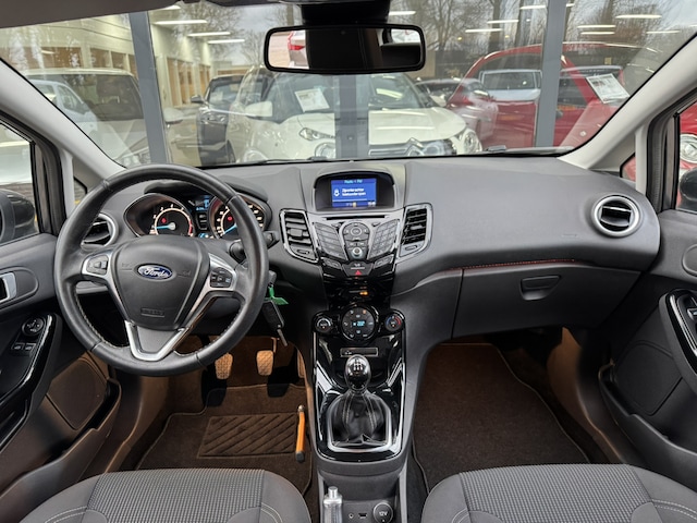 Autojournalisten zijn het er unaniem over eens. De Ford Fiesta behoort tot de best sturende auto's van zijn klasse. Ook deze Fiesta heeft de uitmuntende rijeigenschappen die u van een Ford mag verwachten. In deze auto vindt u een benzinemotor en een handgeschakelde vijfversnellingsbak. In deze auto profiteert u onder andere ook van: 16 inch lichtmetalen velgen, LED-dagrijverlichting en in delen neerklapbare achterbank. In de zomer zorgt de airconditioning voor verkoeling. In het voorjaar en najaar voorkomt het systeem beslagen ramen. U bent in deze Ford ook voorzien van lederen stuur, centrale deurvergrendeling met afstandsbediening en boordcomputer. De nieuwste veiligheidssystemen komen in deze Ford Fiesta samen. Een brug? Een schuine oprit? De hill hold control kan elke helling moeiteloos aan.