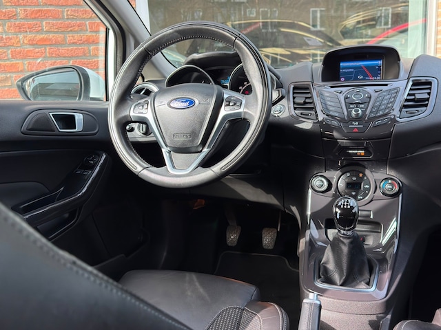 De Fiesta staat bekend om zijn fijne rijgedrag, compacte formaat en betrouwbare karakter. Deze uitvoering is bovendien mooi uitgerust met onder andere navigatie, cruise control en airconditioning, waardoor elke rit comfortabel verloopt. Het interieur krijgt een extra luxe uitstraling door de half lederen bekleding en de lichtmetalen velgen geven de auto van buiten een sportieve look.