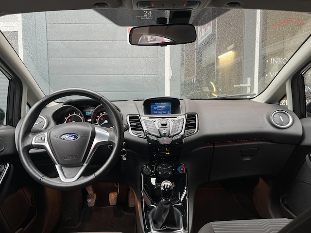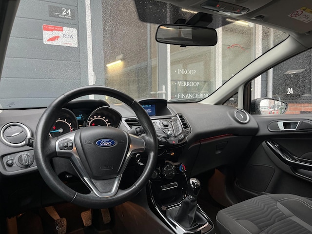 Laat u onderweg niet afleiden, de bediening van het audiosysteem en ook het navigatiesysteem gaat met knoppen op het stuur. De automatische airconditioning zorgt onder alle omstandigheden voor een prettige temperatuur. Parkeerplekken worden er niet ruimer op. Maar met de aanwezige parkeersensoren krijgt u deze Ford Fiesta zonder problemen op z'n plaats. De elektronische systemen in deze Ford helpen u actief om comfortabeler te rijden. Een automatisch inschakelbare verlichting en een regensensor houden de omstandigheden onderweg in de gaten. De cruise control vermindert het brandstofverbruik en vergroot het comfort. Ook is de Ford uitgerust met: buitentemperatuurmeter, automatisch dimmende binnenspiegel, lederen stuur, centrale deurvergrendeling met afstandsbediening, bagage afdekhoes en boordcomputer.