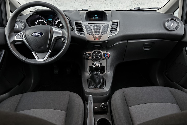 In deze Fiesta vindt u schakelaars op het stuur om het audio-installatiesysteem te bedienen. Met één druk op de knop blaast de airconditioning een koele bries door het interieur. En deze auto heeft ook isofix-aansluiting, centrale portiervergrendeling, boordcomputer en verstelbaar stuur als standaard uitrusting.