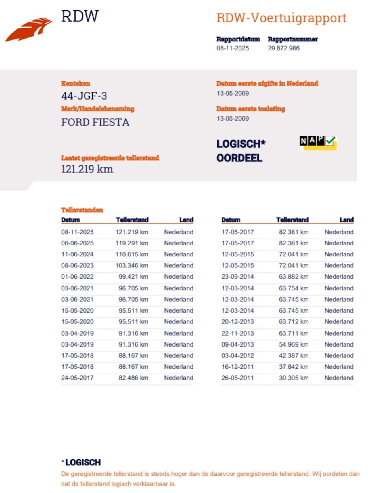 | Kilometerstand | 121.219 km |