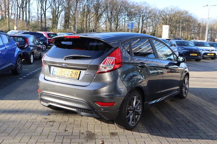 Ford Fiesta 100pK ST-Line met luxe opties als Navigatie systeem, 17"Licht metalen velgen, Climate control, Voorruitverwarming, Parkeersensoren achterzijde, Elektrisch inklapbare buitenspiegels, privacy Glass, Achterspoiler, Sideskirts etc. etc.