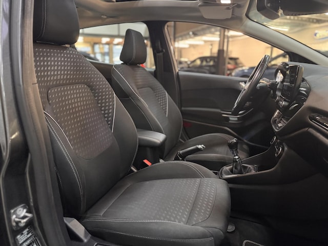 Full Options, dealeronderhouden, luxe Fiesta 100pk Titanium 5drs met oa. Elektrisch te openen Panoramadak, Touchscreen Navigatie icm. Bluetooth & Voice, Adaptieve Cruise control, Climat Control, Automatisch Inparkeren icm. Parkeersensoren rondom & Achteruitrijcamera, Premium B&O DAB+ Radio met Subwoofer & USB, Apple Car Play & Android Auto, Pre-Collision assist, Lane Keeping Aid, Verkeersbordherkenning, Voorruitverwarming, In hoogte verstelbare Voorstoelen, Elektrisch inklapbare Buitenspiegels, Active City Stop, Aut. Regen- & Dimlicht sensor, Grootlicht Assistent, Aut. Dimmende Binnenspiegel, 16" Lichtmetalen velgen met 4S All Season Banden, Alarm-systeem en Door Edge Protectors.
