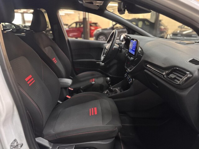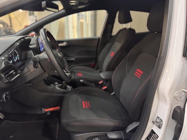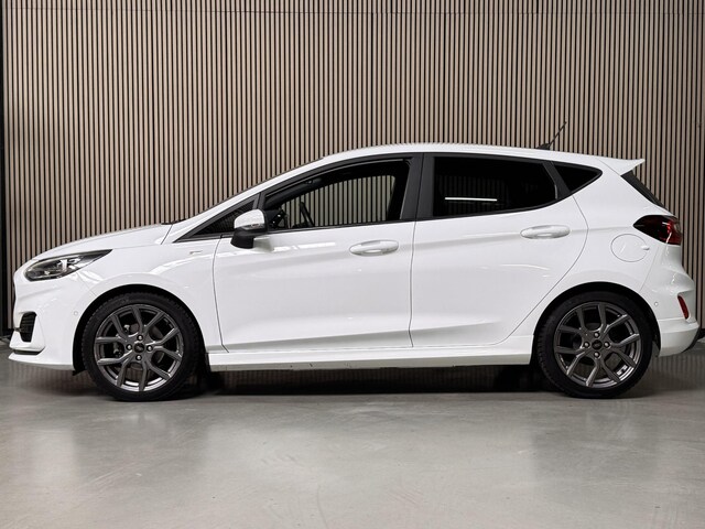 Sportieve, Full-Options, Nieuw Model Fiesta 125pk EcoBoost Hybrid ST-Line met Styling pakket incl. Sportonderstel, ST Dakspoiler, 17" Lichtmetalen velgen, Privacy Glass, Adaptieve Matrix LED Koplampen, In hoogte verstelbare & verwarmbare Sportstoelen, Touchscreen Navigatie, Achteruitrijcamera, Apple Car Play & Android Auto, Elektrische Voorruitverwarming, Bluetooth & Voice Control, Premium B&O DAB+ Radio & USB, Adaptieve Cruise control, Climat control, Stuurverwarming, Automatisch Inparkeren icm. Parkeersensoren voor & achter ,Lane Keeping Aid, Verkeersbordherkenning, Grootlicht assistent, Pre-Collision assist, Hill Assist, Keyless Entry & Start, Draadloos opladen, Automatisch Dimlicht, Elektrische Ramen & Spegels, Door Edge Protectors en Armsteun.