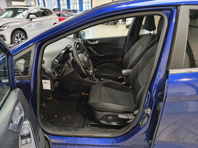 De Titanium-uitvoering geeft de Fiesta een moderne en verzorgde uitstraling, met hoogwaardige afwerking en comfortabele voorzieningen. Het interieur is voorzien van stofbekleding en de karakteristieke Titanium-details, die samen een prettige en hoogwaardige sfeer creëren.
