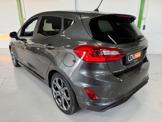 Deze Ford Fiesta ST-Line is een sportief uitgevoerde hatchback met de uitstraling van een echte ST. De ST-Line uitvoering staat bekend om zijn sportieve details, strakke wegligging en complete uitrusting.