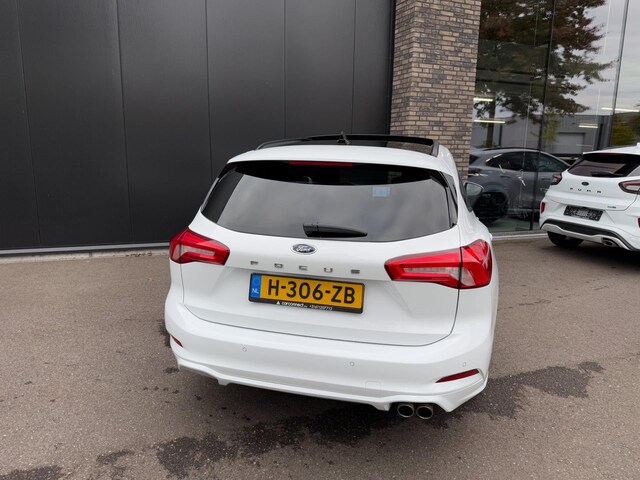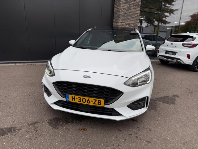 Van eerste eigenaar afkomstige Focus ST-Line in de kleur Frozen White met o.a. de volgende opties; Uni-lak, 17-inch velgen, Parkeersensoren voor & achter, Panoramadak, Cruise control, Zwarte dakrail, Dimmende binnenspiegel, Licht & regensensor, Climate control, Elektrisch inklapbare buitenspiegels, LED dagrijverlichting, Privacy glas, Keyless entry, Lane department etc. etc.