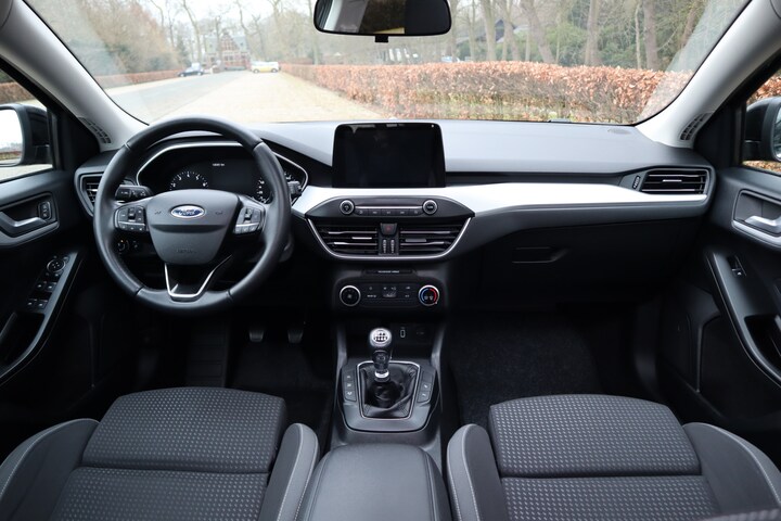 Met de achteruitrijcamera ziet u precies wat er achter de auto gebeurt. Intelligente spraakbediening herkent uw commando's en voert opdrachten snel en soepel uit. Deze Ford Focus Wagon is voorzien van remote services. Via uw smartphone bedient u diverse functies ook op afstand en krijgt u informatie over de status van uw auto. Kaartlezen is verleden tijd, dankzij het aanwezige full map navigatiesysteem. Bij het wisselen van rijbaan kan een dode hoek ontstaan waardoor achterliggers te dichtbij kunnen komen. De achteropkomend verkeer waarschuwing geeft in dat geval automatisch een signaal. Deze Ford is voorzien van cruise control, airconditioning, lederen stuur, centrale deurvergrendeling met afstandsbediening, bagage afdekhoes en boordcomputer.