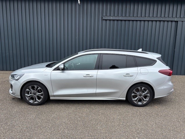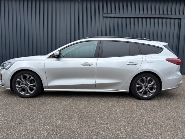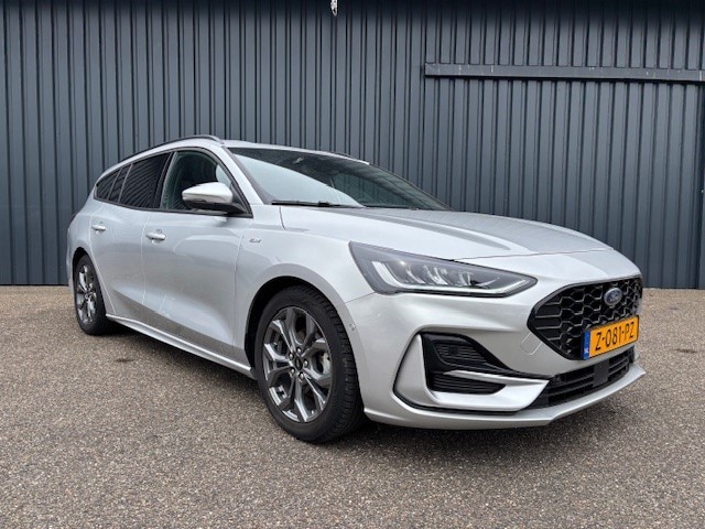 Deze Ford Focus ST-Line Wagon 1.0 EcoBoost Hybrid van 2024 is een vernieuwde, sportief ogende gezinsauto met 125 pk, voorzien van milde hybridetechnologie voor lager verbruik.